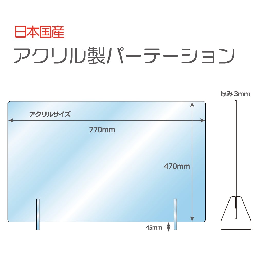 【オーダーサイズ対応】【日本製】アクリルパーテーション (窓無しタイプ) 新型コロナ対策 飛沫感染防止