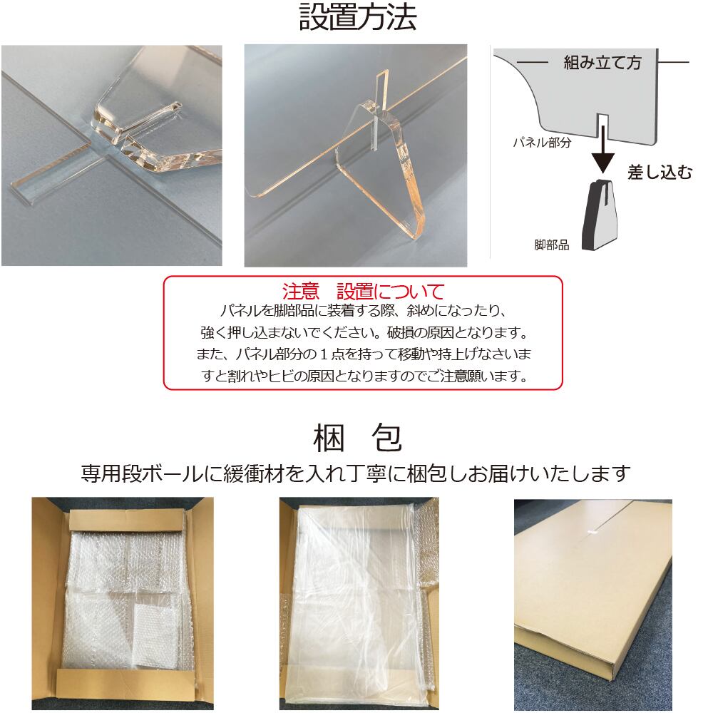 飛沫感染対策に簡単に組み立てられ、すぐに使えるアクリルパーテーション/アクリルボードです。